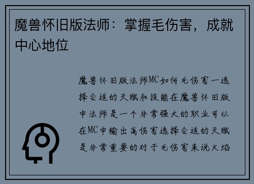 魔兽如何修改职业技能等级 在魔兽世界中,职业技能等级是玩家提升角色能力和探索游戏世界的重要途径。随着游戏的不断发展和变化,职业技能等级也需要不断调整和修改,以保持游戏的平衡和趣味性。本文将从多个方面详细阐述魔兽如何修改职业技能等级。 1. 游戏平衡性的考量 在修改职业技能等级时,游戏平衡性是首要考虑...
